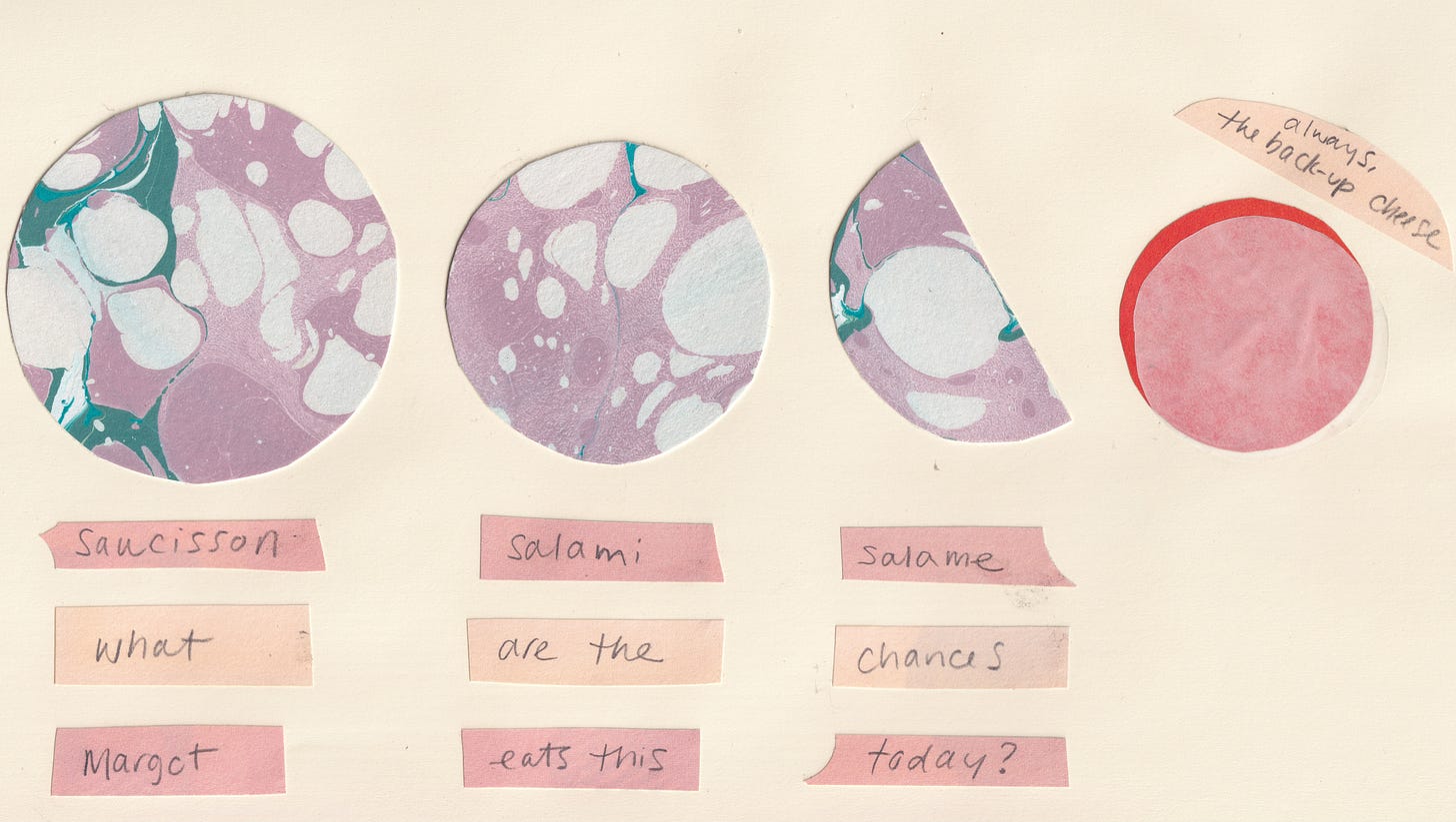 Lately, one of her friends has started regularly expressing her feelings about the aroma, and Margot has grown self-conscious. (It’s a smell that can really alter your reality. I feel for her friend, for everyone sitting around her, and I feel for her.) So we’re exploring new lunch options, playing a game of roulette.